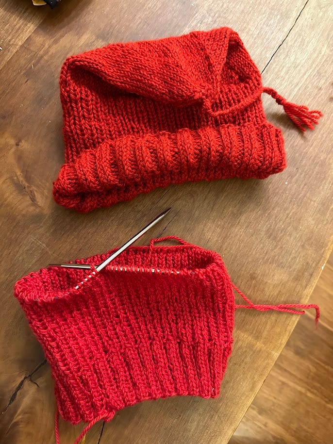 It’s been nice to see a number of other women who have also knit these red hats at events. My second one is half done, and have yarn for two more. I also have purchased the correct sized needles for the next ones which are promised to dear friends.